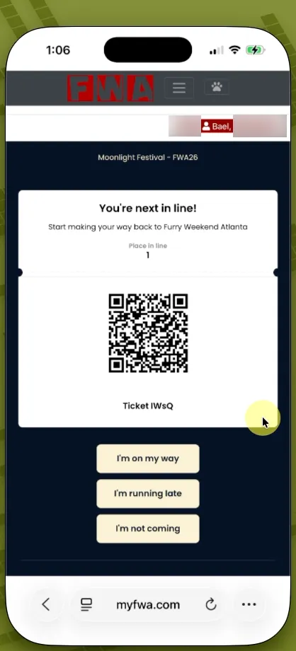 Currently, we don’t have any intention in leveraging a virtual waitlist for any other events at Furry Weekend Atlanta 2026 - That being said, we know that sometimes we need to be flexible and the best-laid plans will sometimes change at a moment’s notice. Our Virtual Waitlist system has the capability to be rapidly deployed for other events that may need a waitlist due to unforeseen circumstances. Should we need to implement it for other events, we will give as much notice as possible and the process will be the same as explained below.
